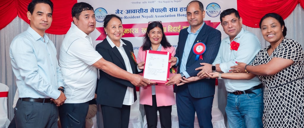 The Non-Resident Nepali Association, National Coordination Council, Hong Kong (NRNA HK) has successfully completed the handover of leadership for its 2025-2027 tenure. The "Handover, Welcome, and Farewell Ceremony," held in the distinguished presence of patrons, advisors, and members, showcased the organization's dedication to democratic principles and its continued mission to serve the Non-Resident Nepali community.