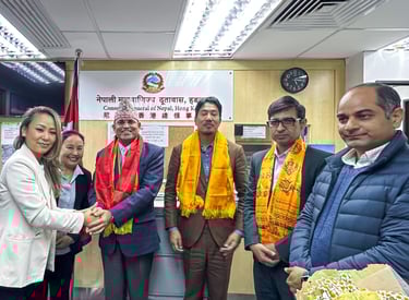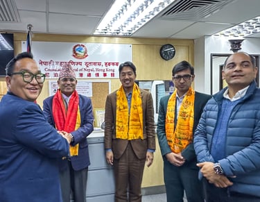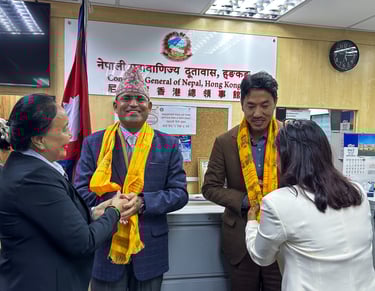 The Executive Committee of the Non-Resident Nepali Association, National Coordination Council Hong Kong (NRNA HK) held a special "Meet and Greet & Congratulatory Program" with the Honourable Consul General of Nepal today. The meeting was a significant occasion marked by the celebration of a major diplomatic breakthrough and constructive dialogue on pressing immigration issues affecting our community.