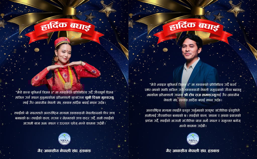 The Non-Resident Nepali Association (NRNA), Hong Kong, has always been committed to promoting Nepali art and culture and encouraging the talents within our diaspora. In line with this mission, we are immensely proud to have extended our full support to two exceptional artists who have brought honor to the Hong Kong Nepali community: